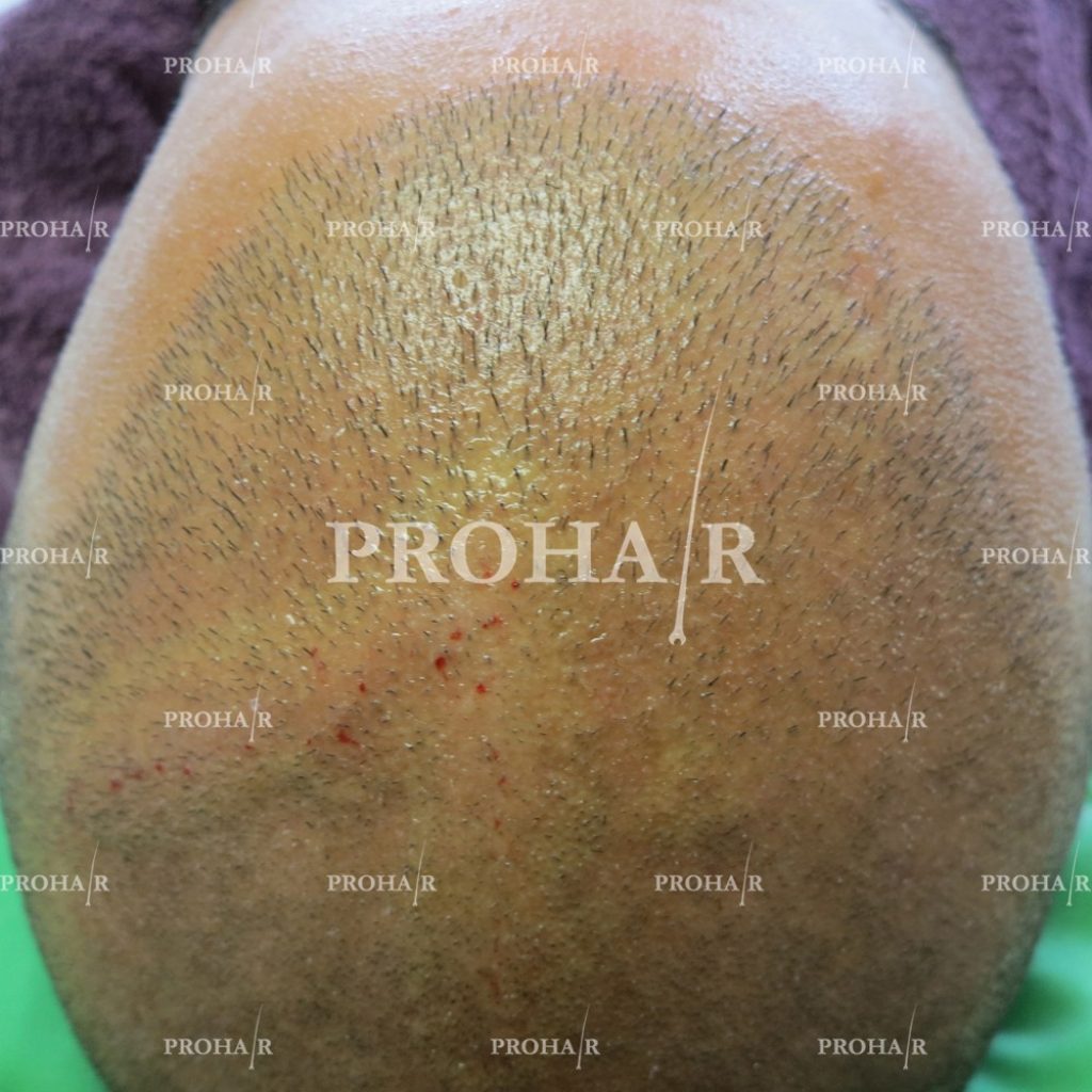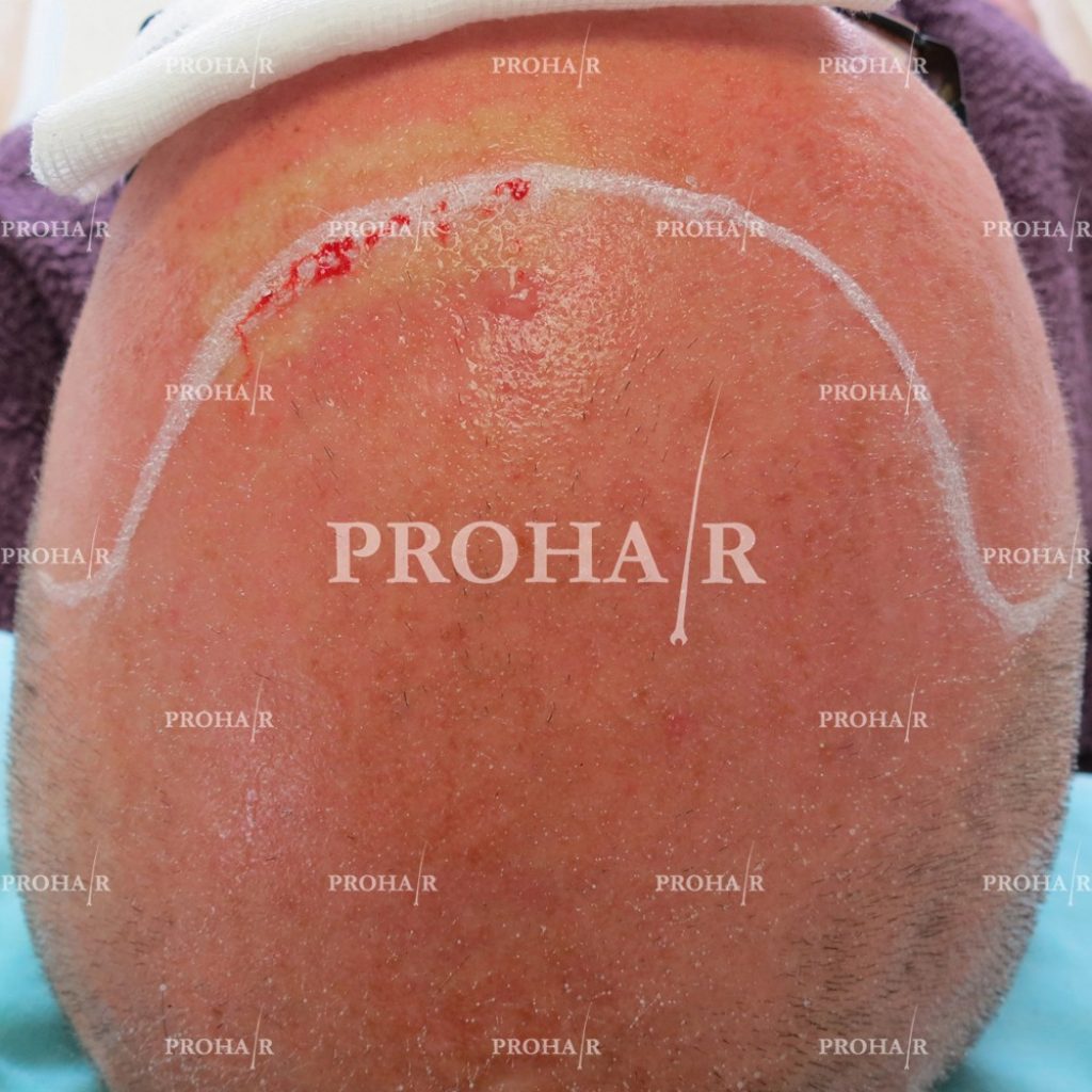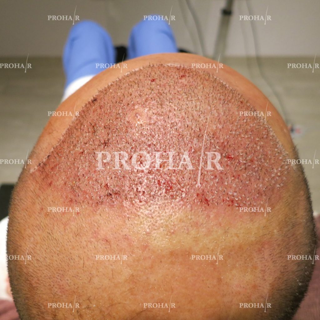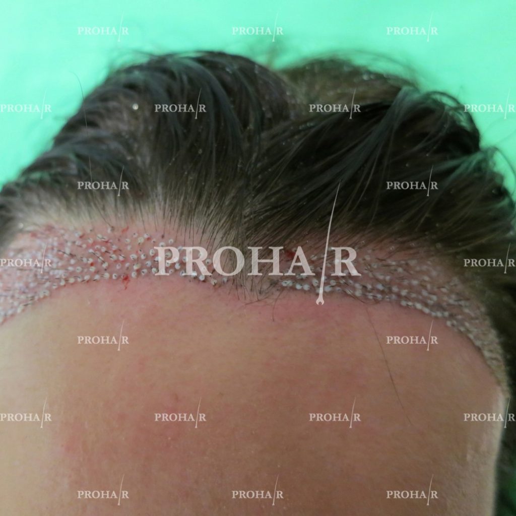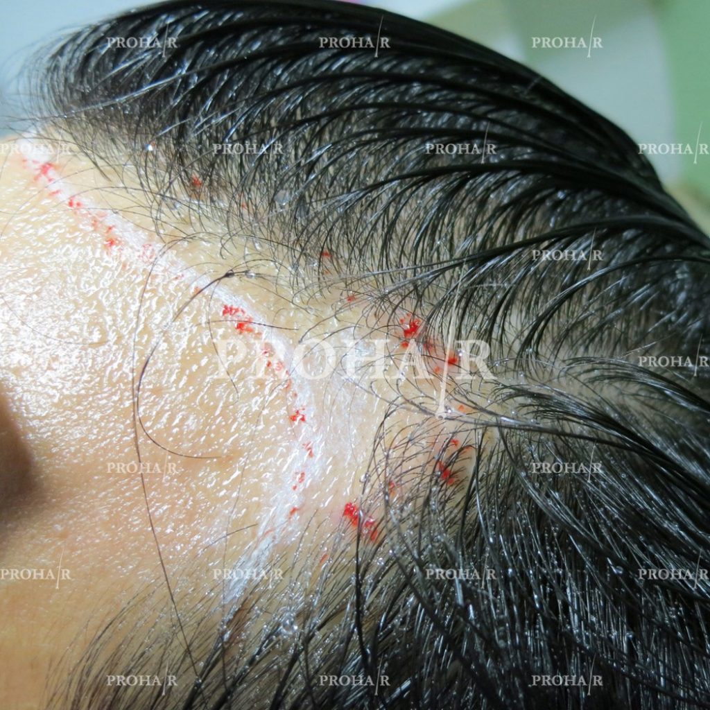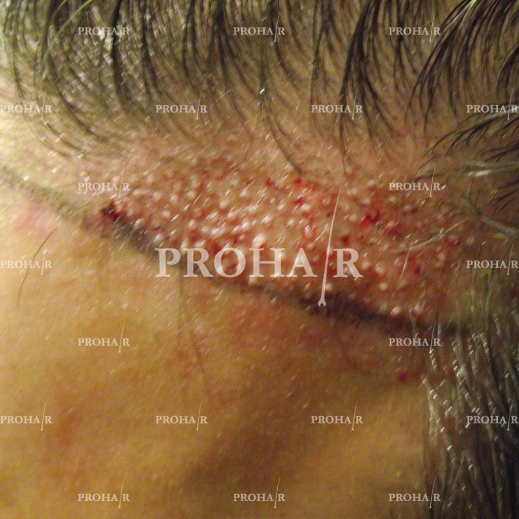 The hair is shaved (2mm) in the donor area and if the doctor can see the patient's skin. The FUE is removed with a small medical instrument which is a round punch (0.8 mm - 1.0 mm) via a complex process. After the anesthesia, an acute puncture is applied to the skin tissue surrounding the follicular units. It is not always possible to hit the direction of the hair under the skin, so the hair that is cut remains in the donor area and will grow after a few weeks. If the punch is successful, the graft is pulled up with tweezers and a small hole remains which heals after a few days without any visible scaring. In the case of the automated FUE technique, the small holes will leave white dots that is scarring and will remain for life. If the surgeon works manually, as in the PROHAIR CLINIC it will look nothing after a week.