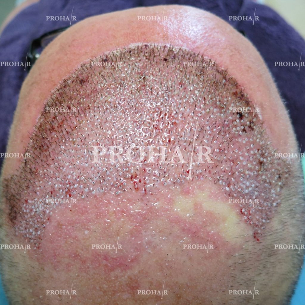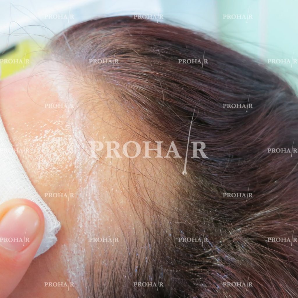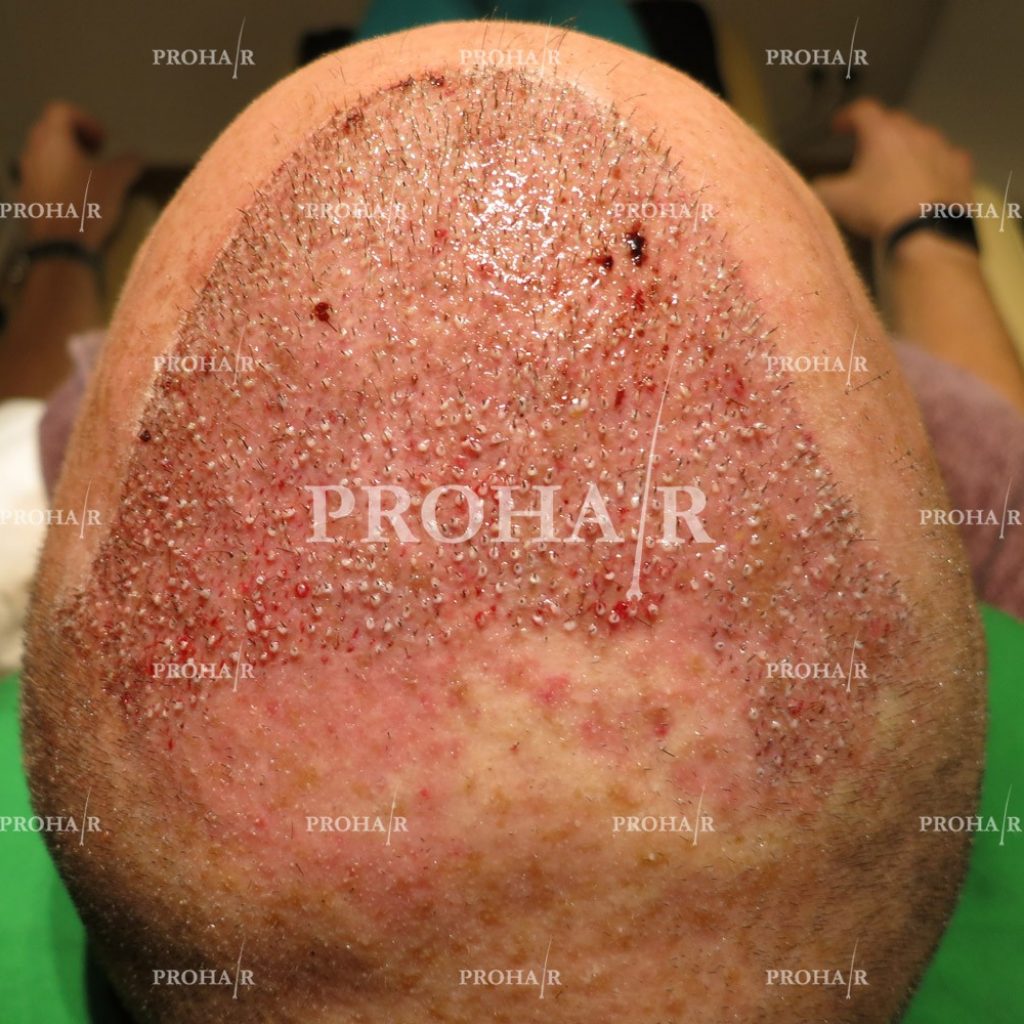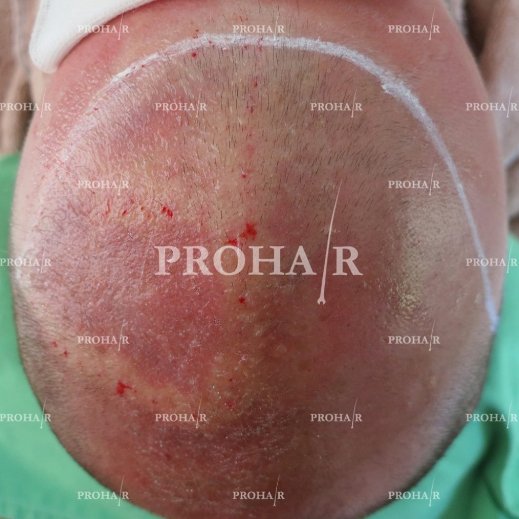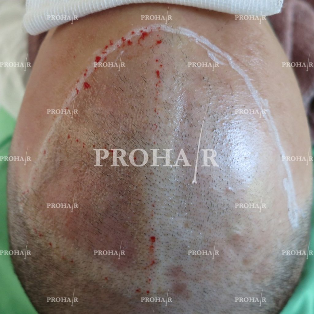 The hair is shaved (2mm) in the donor area and if the doctor can see the patient's skin. The FUE is removed with a small medical instrument which is a round punch (0.8 mm - 1.0 mm) via a complex process. After the anesthesia, an acute puncture is applied to the skin tissue surrounding the follicular units. It is not always possible to hit the direction of the hair under the skin, so the hair that is cut remains in the donor area and will grow after a few weeks. If the punch is successful, the graft is pulled up with tweezers and a small hole remains which heals after a few days without any visible scaring. In the case of the automated FUE technique, the small holes will leave white dots that is scarring and will remain for life. If the surgeon works manually, as in the PROHAIR CLINIC it will look nothing after a week.